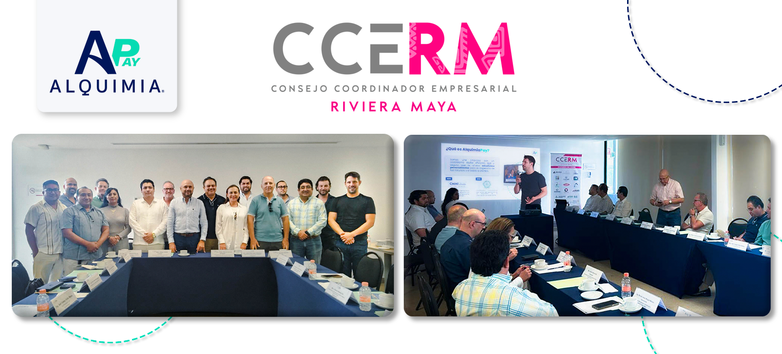 El equipo de AlquimiaPay participó en una destacada reunión de trabajo en la ciudad de Playa del Carmen, la joya de la Riviera Maya. El evento tuvo lugar en la sala de juntas del "HOTEL FIESTA INN" el pasado martes 26 de septiembre a las 09:00 am, y congregó a una selecta audiencia compuesta por miembros clave de la comunidad empresarial y organizaciones asociadas.